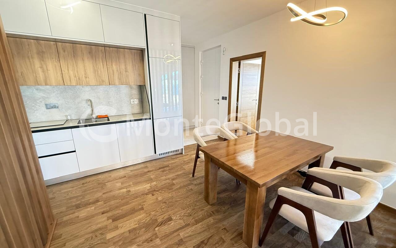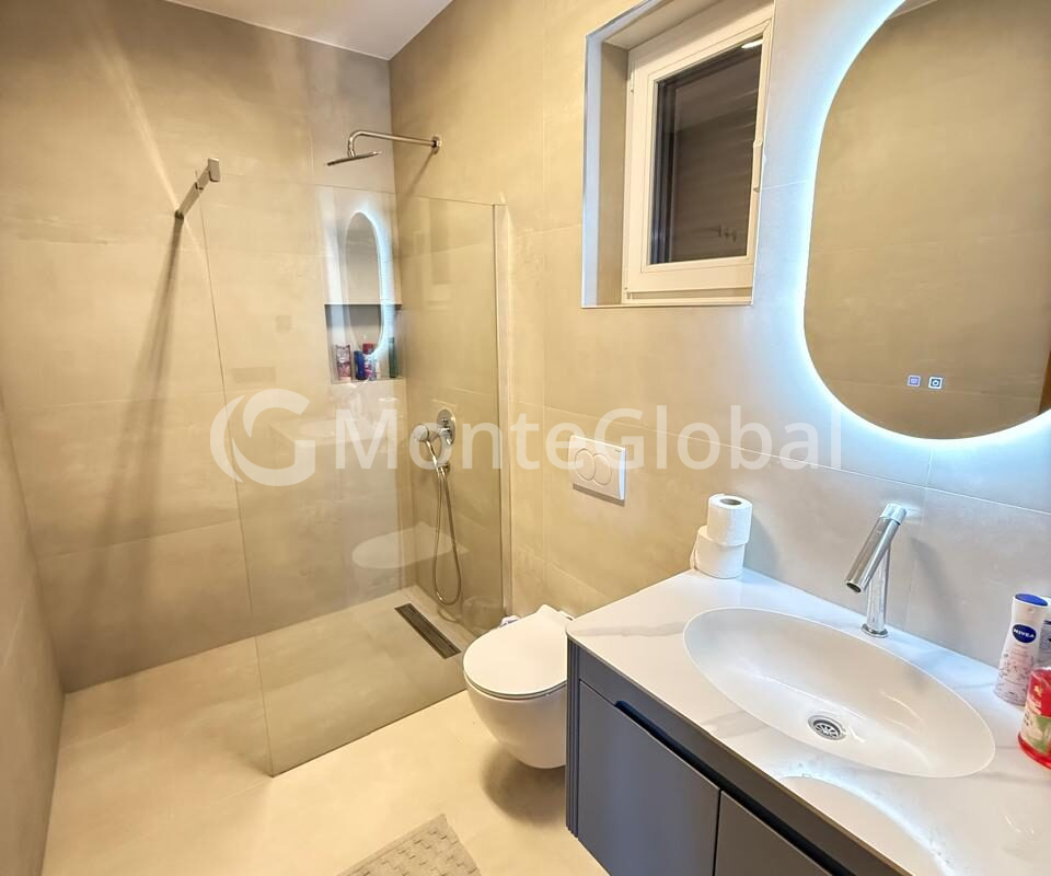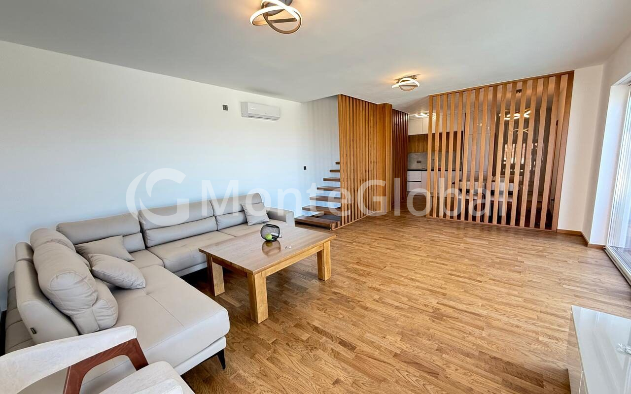 A modern villa of 127 m² is located in the picturesque resort village of Dobra Voda, just 2,300 meters from the sea.