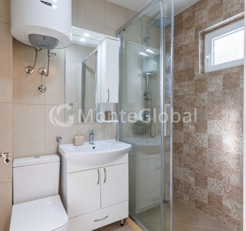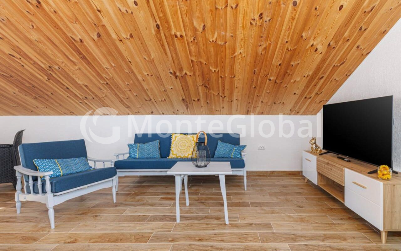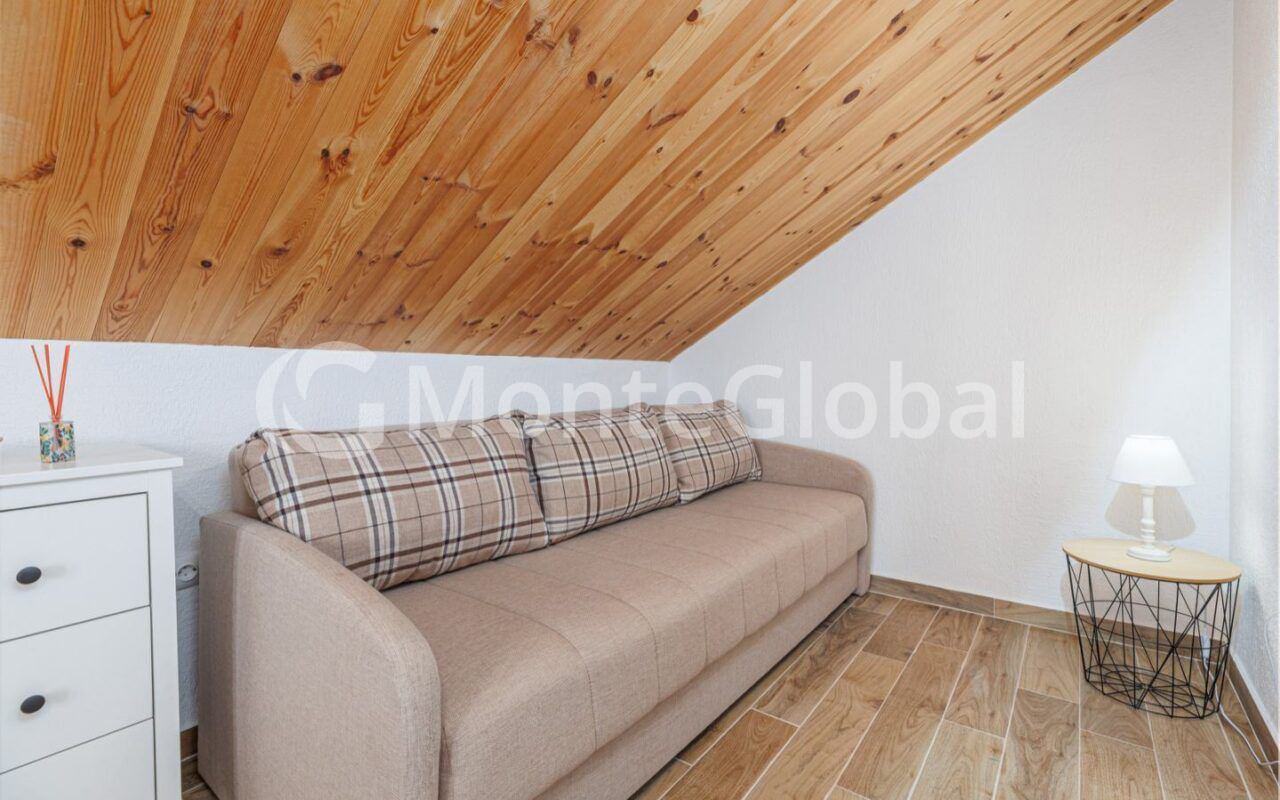 The ground floor features a 30 sq m room with a kitchen (with the option of installing a fireplace or stove), a utility room/storage room, a spacious terrace, and an outdoor bathroom.