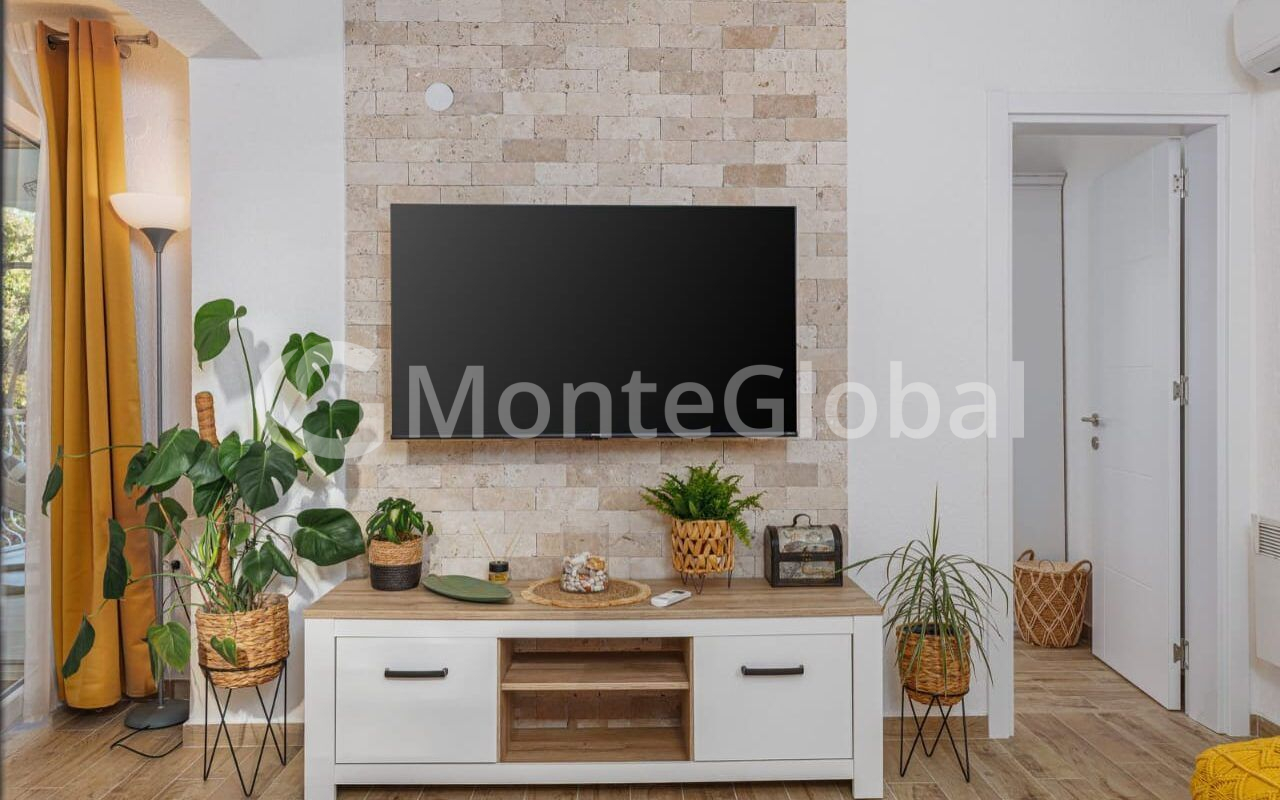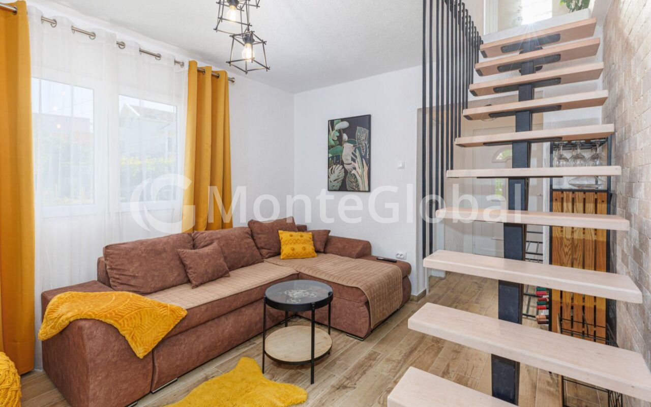 The house is furnished, with kitchens with built-in appliances and two air conditioners.