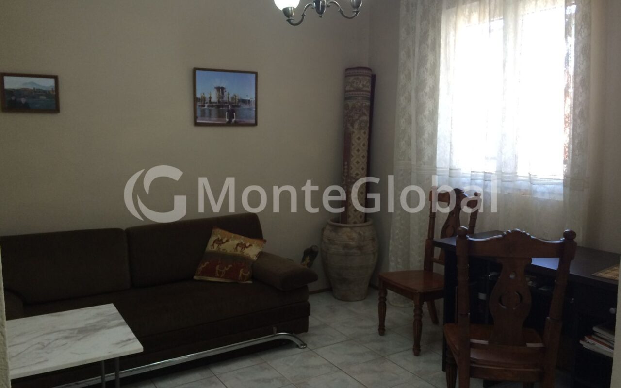 The first floor consists of 2 isolated halves. In the first half there is a studio with a kitchen and a bathroom. In the second half there is a living room, one bedroom, a bathroom and a terrace