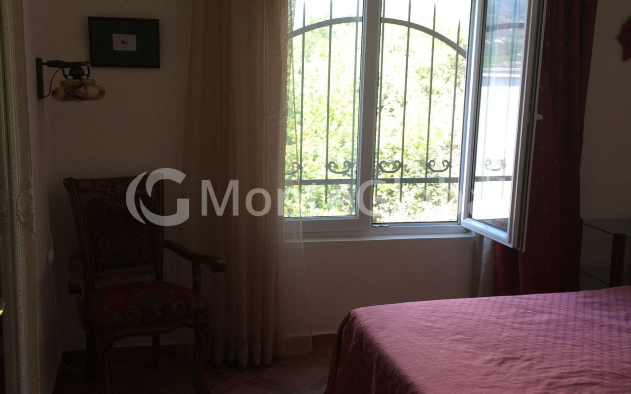 The second floor consists of two mirrored halves, which are connected by a large bathroom. First half: living room with fireplace and bedroom. The second half is a living room with a kitchen, a bedroom and a terrace overlooking the sea and mountains. On the second floor there are two external staircases lined with natural stone.