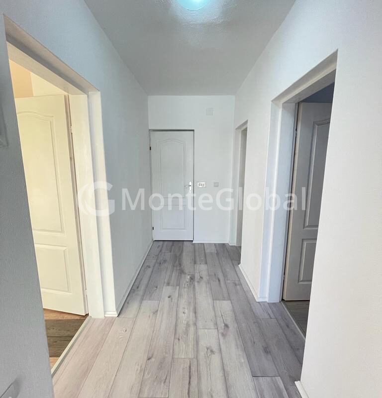 spacious living room with kitchen, corridor, two bedrooms, bathroom and terrace overlooking the sea