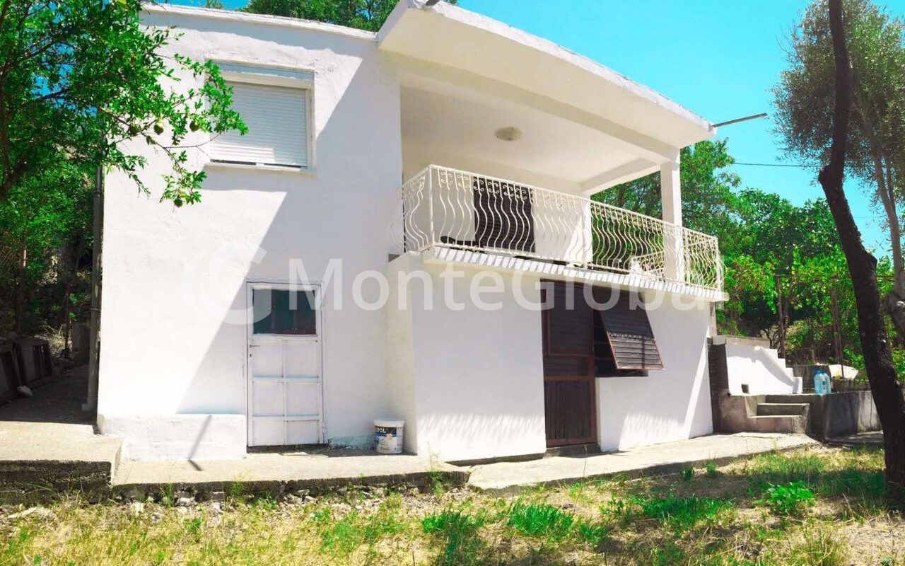 For sale house in Sutomore 85m2 with its own plot of 269m2. Large terraces, quiet place, paved road to the house. Without encumbrances (legalized). Parking. To the sea 1700 meters.