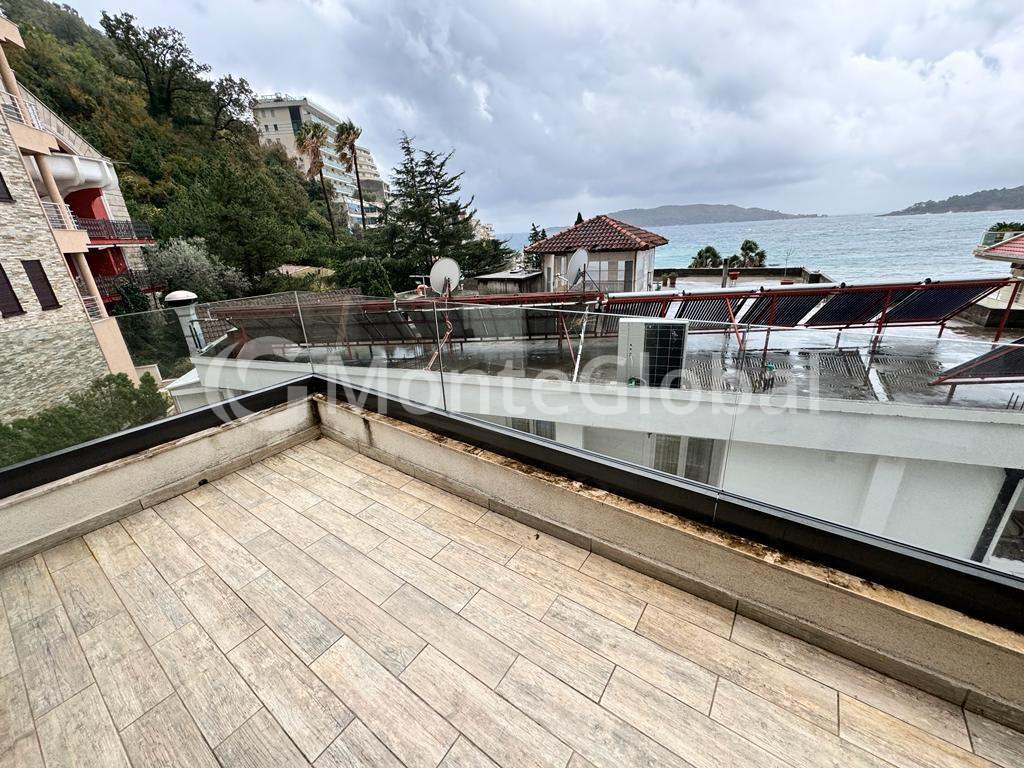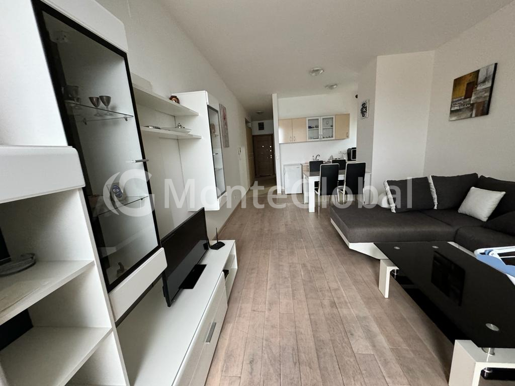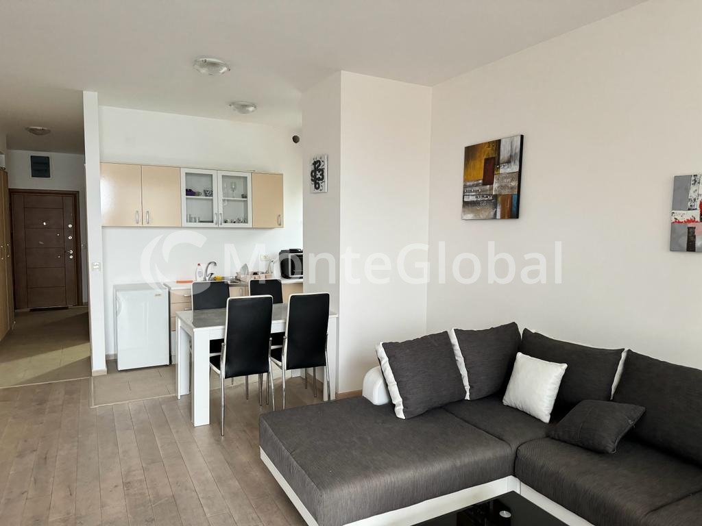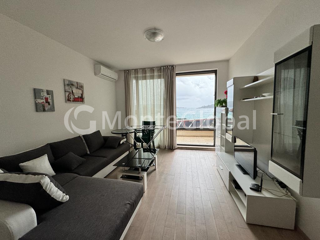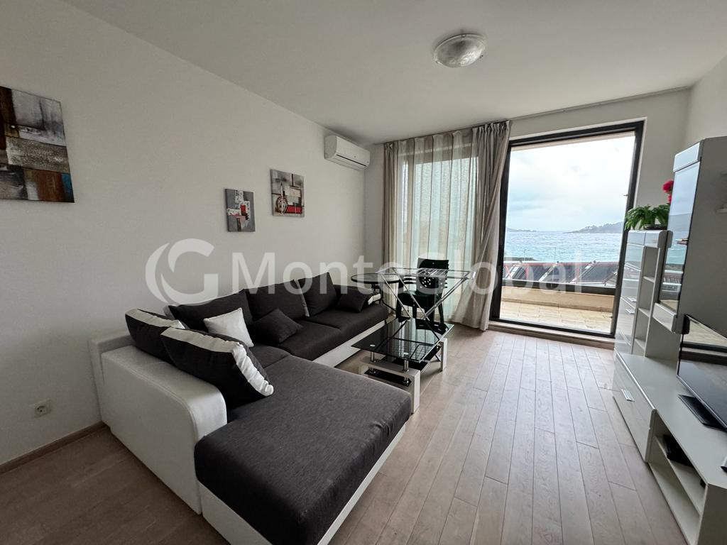 The structure of the apartment is a living room combined with a kitchen, one bedroom, a bathroom and a terrace overlooking the sea