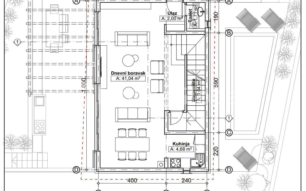 Total plot area: 592 m2