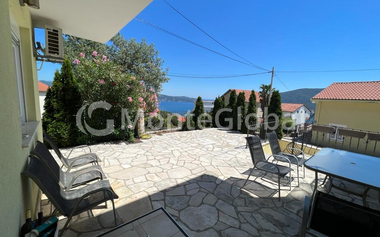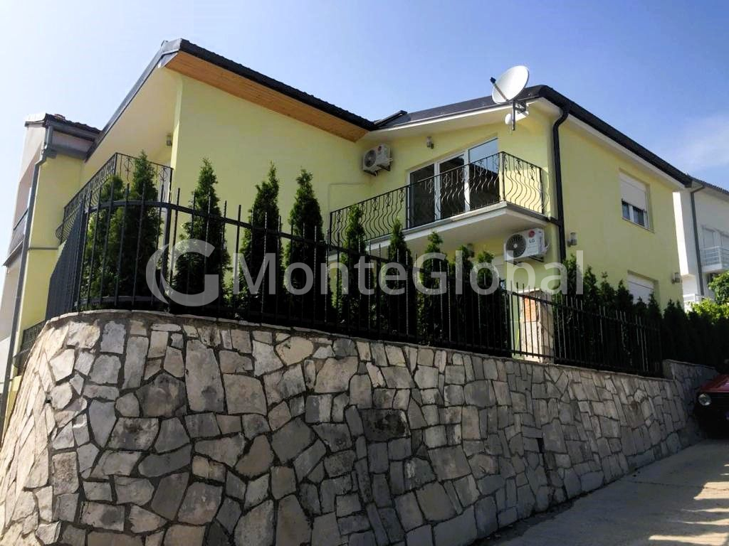 House for sale, Herceg Novi, Igalo, Suschepan. The house consists of two residential floors of 65 m² each. The housing consists of a living room with a kitchen, two bedrooms and a bathroom. The large bedrooms have south-west facing balconies. There is also a garage and parking space on the ground floor! The house has everything you need for a pleasant stay, in the courtyard there is a water fountain, a portable grill, an inflatable children's pool, two bicycles, etc.