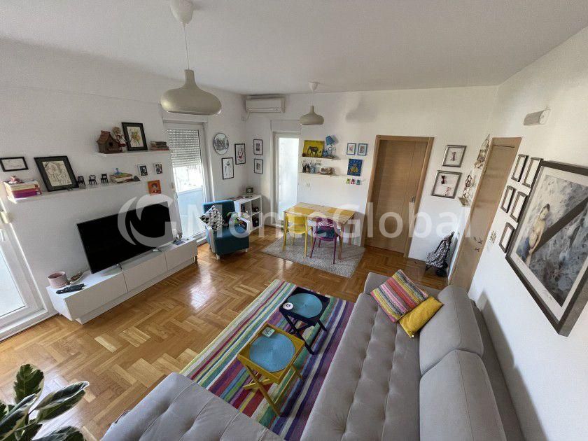 The structure of the apartment: living room with dining area, separate kitchen, one bedroom, bathroom, terrace and storage room.