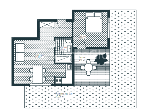 The apartment with a total area of 87 m2 (terrace 9 m2, garden 40 m2), living area - 37 m2, is located on the first floor of a four-story building, building B.