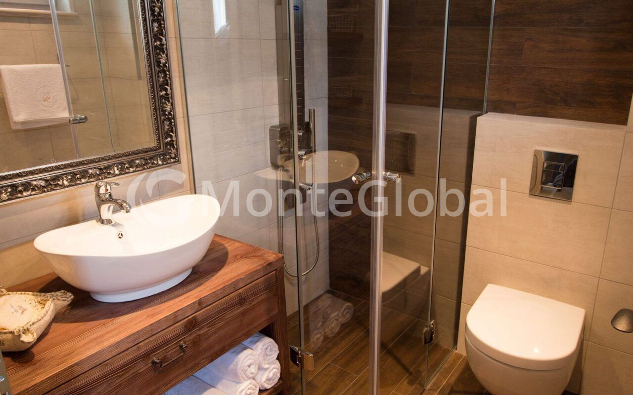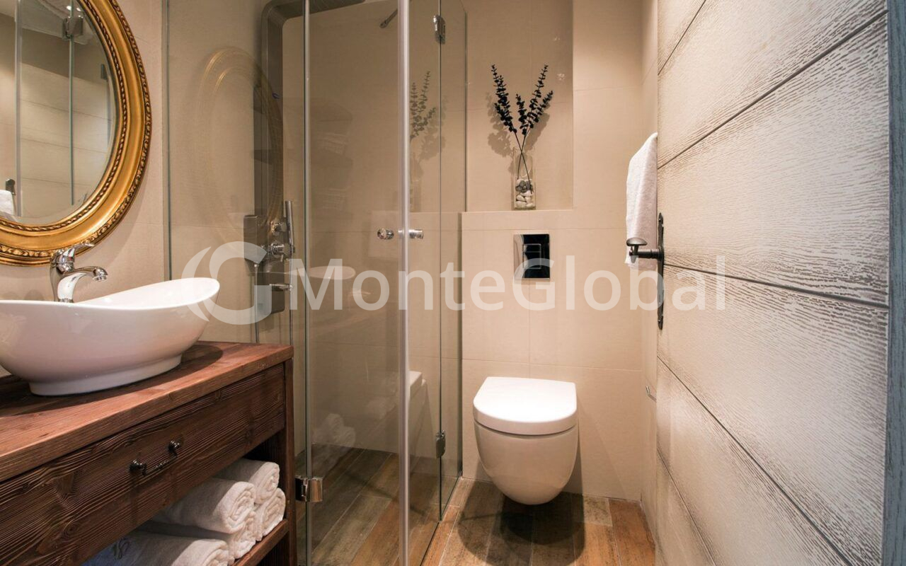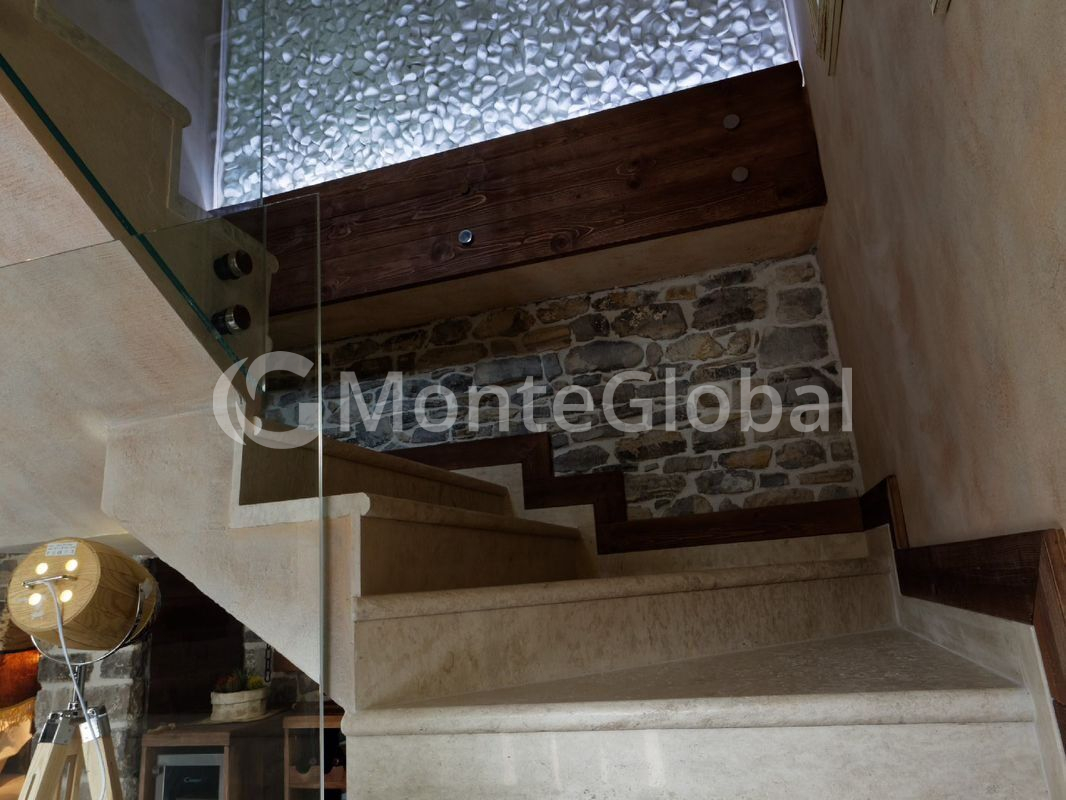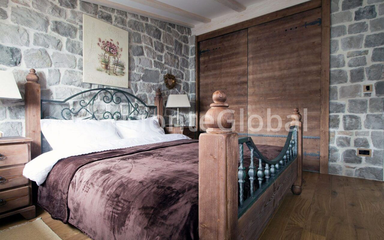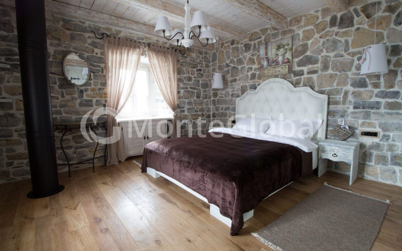 On the second floor: two bedrooms, the design of which combines antique decorative elements with stone, and a bathroom.