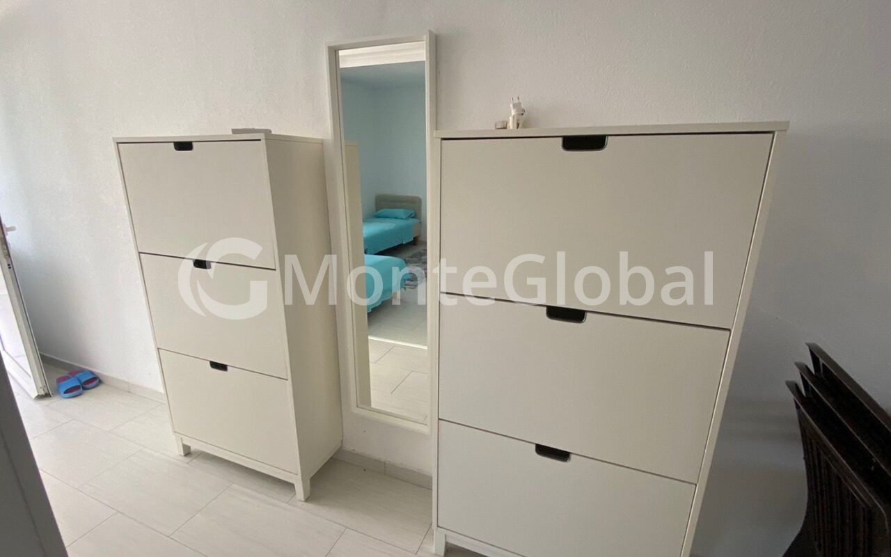 The structure of the apartment is a kitchen, two bedrooms, a bathroom and a terrace