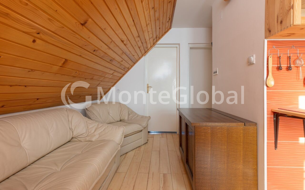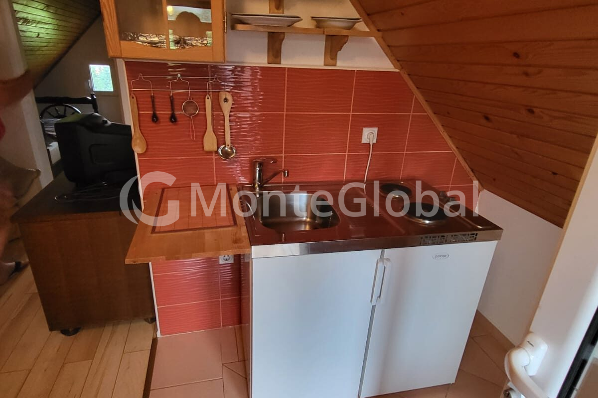 - the first floor is connected to the second by an internal staircase and consists of an entrance hall, a living room with a fireplace, a kitchen, a bathroom and a terrace overlooking the forest