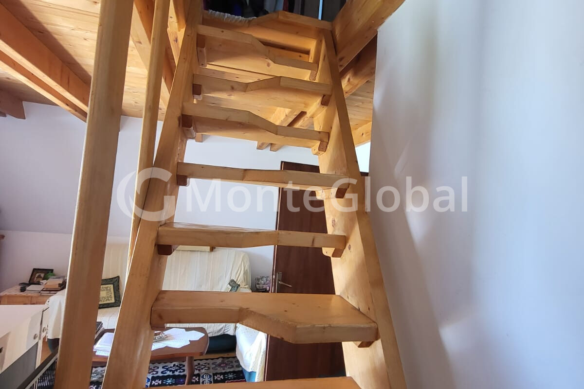 An internal staircase leads to the second floor. On the second floor there are two bedrooms and a terrace.